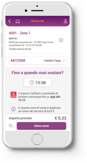 2- Attiva la Sosta, definisci una durata e verificane i costi;